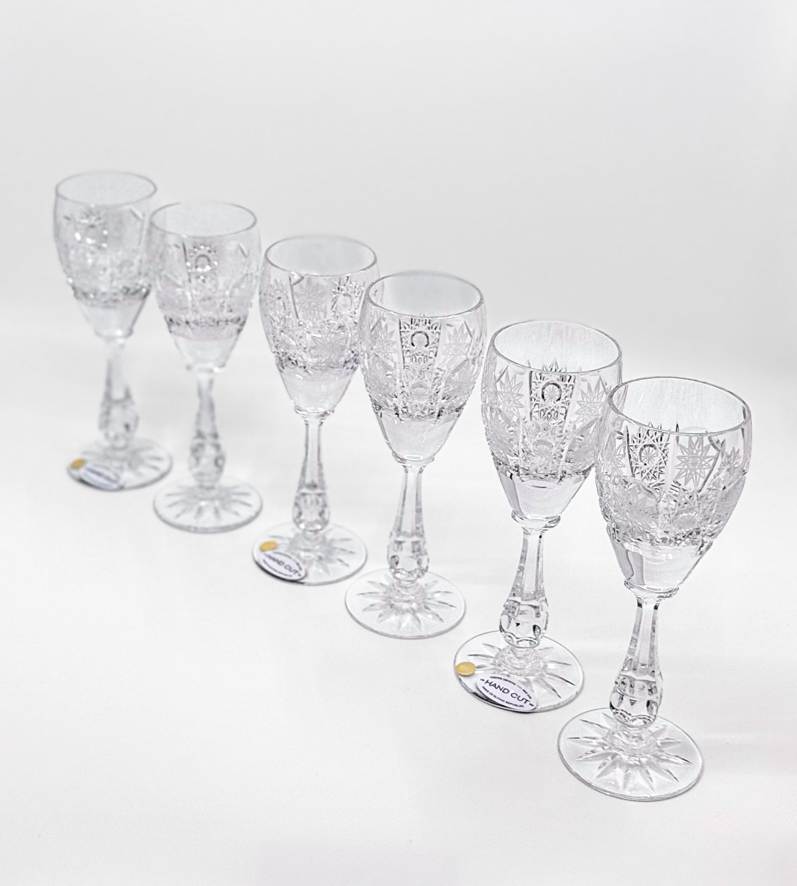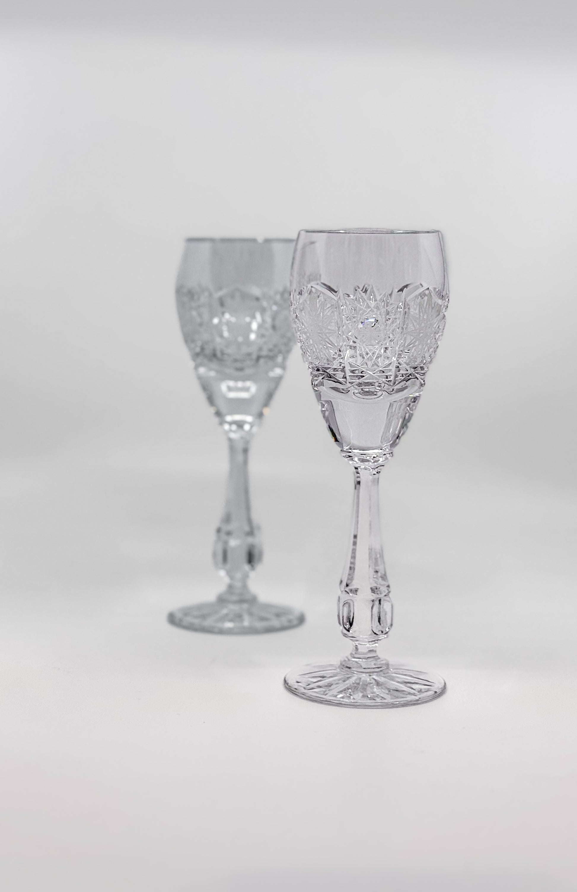 OTO glasses are designed with sophistication and enjoyment in mind, ideal for any white wine lover. These elegant glasses, measuring 19 cm high and 6 cm in diameter, are decorated with a unique 500PK cut pattern and a beautifully decorated stem, adding to their luxurious appearance. Every detail of the glass is the result of meticulous craftsmanship, ensuring an exceptional experience during every toast.